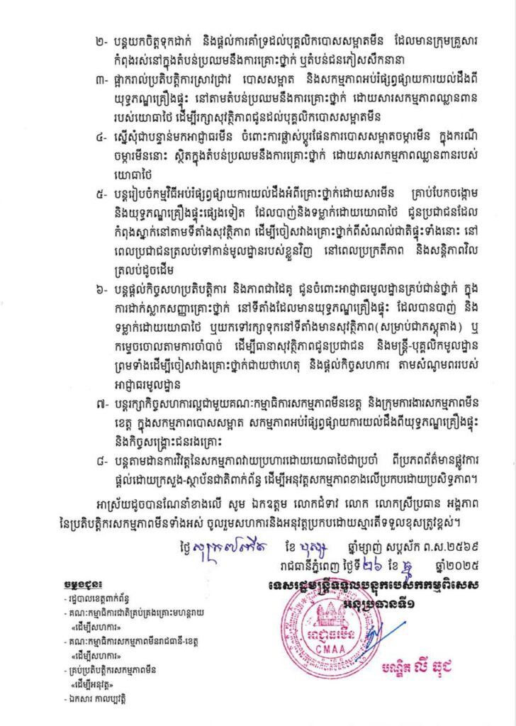 សូមអានសេចក្តីណែនាំរបស់អាជ្ញាធរកម្ពុជា គ្រប់គ្រងសកម្មភាពកំចាត់មីន និង សង្គ្រោះជនពិការរដោយសារមីនដូចខាងក្រោម៖