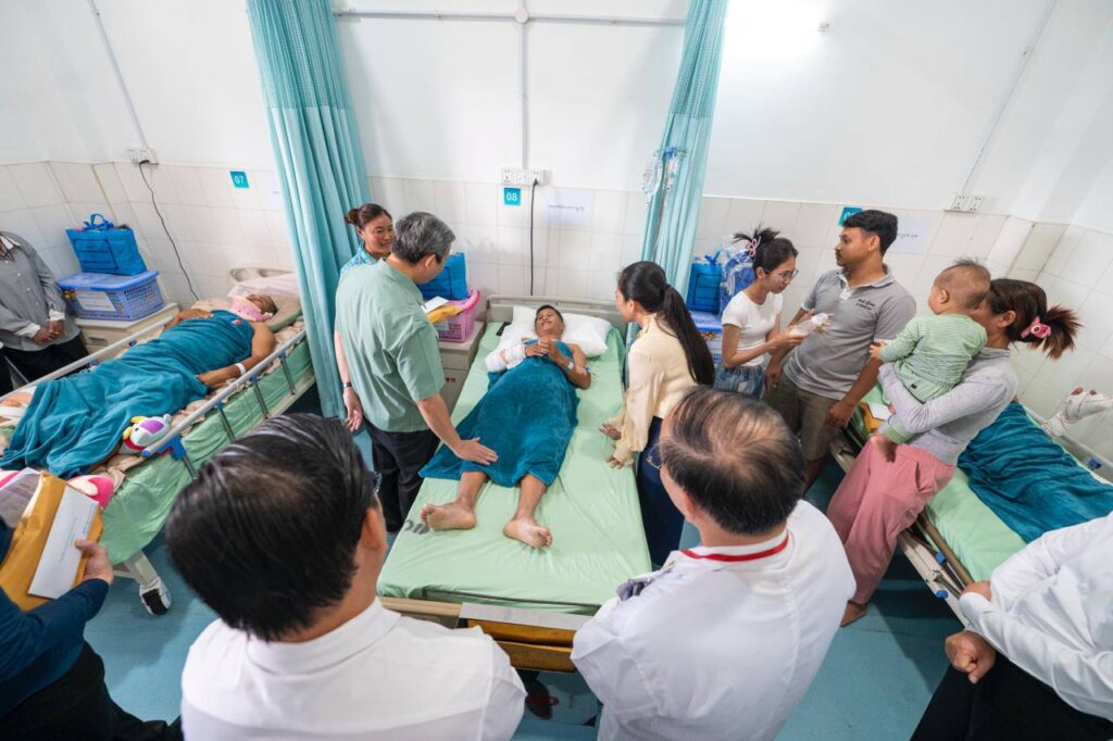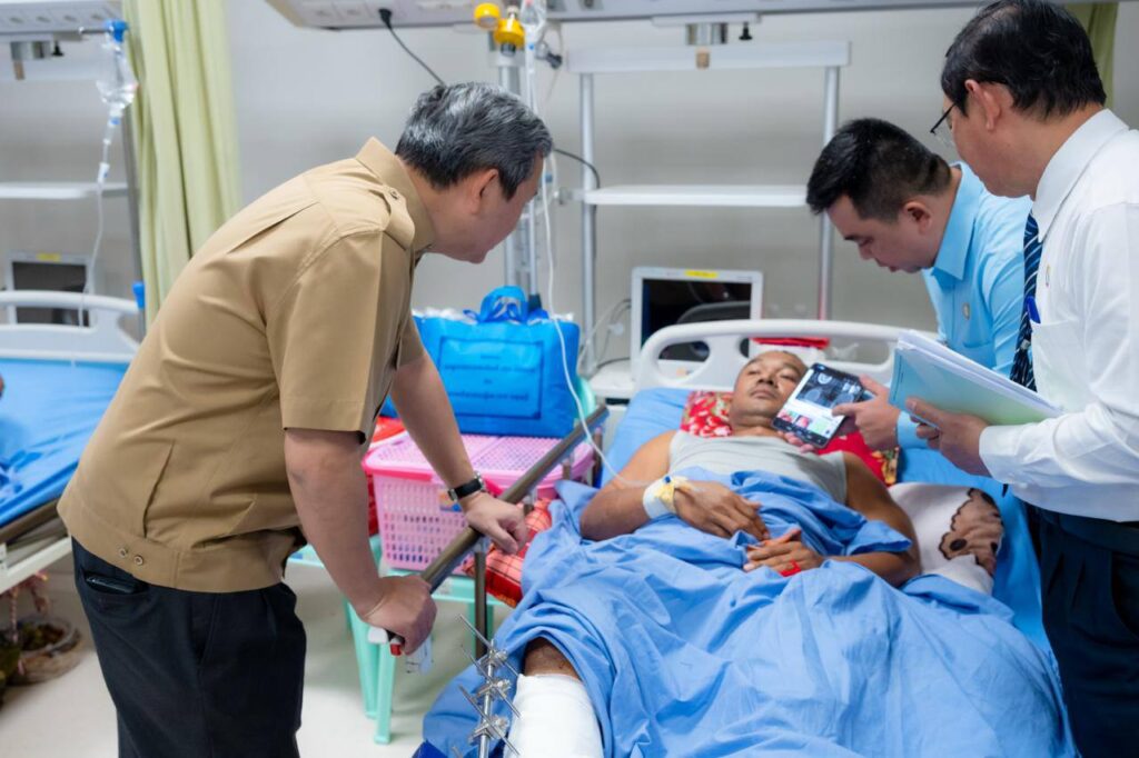 សម្តេចធិបតី និងលោកជំទាវបណ្ឌិត អញ្ជើញជួបសួរសុខទុក្ខវីរកងទ័ព និងវីរនគរបាលដែលរងរបួសក្នុងសមរភូមិ និងបានបញ្ជូនមកសម្រាកព្យាបាលបន្តនៅតាមមន្ទីរពេទ្យក្នុងរាជធានីភ្នំពេញ