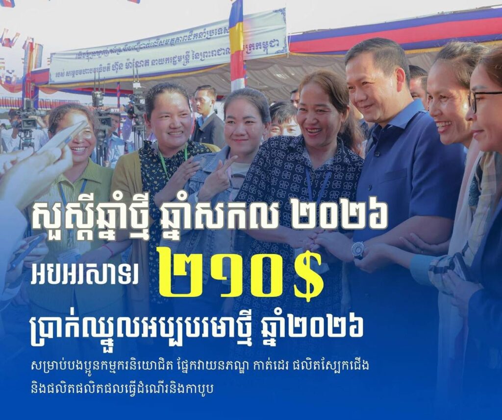 អបអរសាទរបងប្អូនកម្មករនិយោជិតចាប់ផ្ដើមទទួលប្រាក់ឈ្នួលអប្បបរមា ២១០ដុល្លារ ចាប់ពីខែមករា ឆ្នាំ២០២៦ នេះតទៅ អបអរសាទរបងប្អូនកម្មករនិយោជិតចាប់ផ្ដើមទទួលប្រាក់ឈ្នួលអប្បបរមា ២១០ដុល្លារ ចាប់ពីខែមករា ឆ្នាំ២០២៦ នេះតទៅ