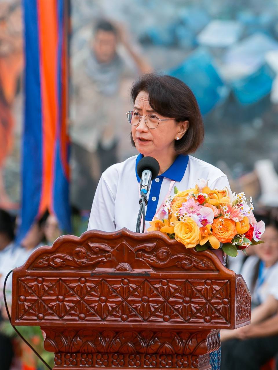 ថ្លែងក្នុងពិធីបើកព្រឹត្តិការណ៍ដើរ ដើម្បីសន្តិភាពយូរអង្វែងនេះ លោកជំទាវបណ្ឌិត បានមានប្រសាសន៍ថា សម្រាប់ម្តាយម្នាក់ សន្តិភាពគឺនៅពេលដែលម្តាយឱបកូនដោយគ្មានការភ័យខ្លាច គ្មានការរត់ចាកចេញពីលំនៅឋាន ព្រោះថាមានតែលំនៅឋាននេះហើយដែលជាទីសុខសាន្តសម្រាប់យើងទាំងអស់គ្នា។ សម្រាប់ក្មេងស្រីម្នាក់វិញ សន្តិភាពគឺជាការជឿជាក់ក្នុងការអភិវឌ្ឍខ្លួន ការចូលរួមដោយគ្មានការរើសអើង ហើយជាការទទួលបាននូវការផ្តល់កតិ្តយសប្រកបដោយក្តីសង្ឃឹម។ សម្រាប់គ្រួសារ សន្តិសុខគឺជាបរិយាកាសប្រកបដោយភាពសុខុដុមរមនា ការជួយគាំទ្រគ្នាទៅវិញទៅមក និងជាស្ថេរភាពភាពដែលអនុញ្ញាតឱ្យកូនៗរីកលូតលាស់ទៅជាពលរដ្ឋល្អសម្រាប់សង្គមជាតិ។