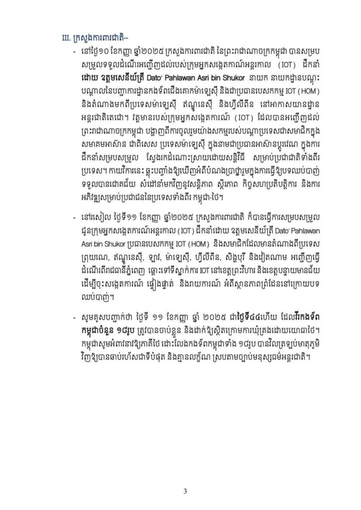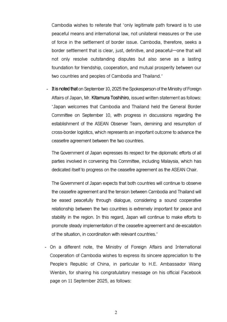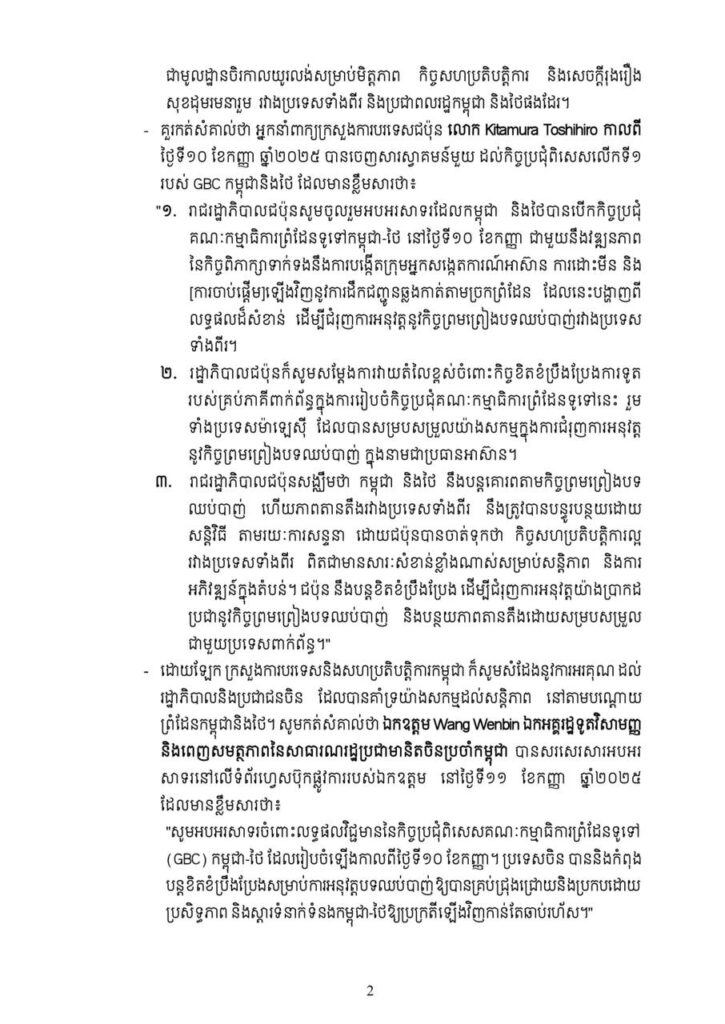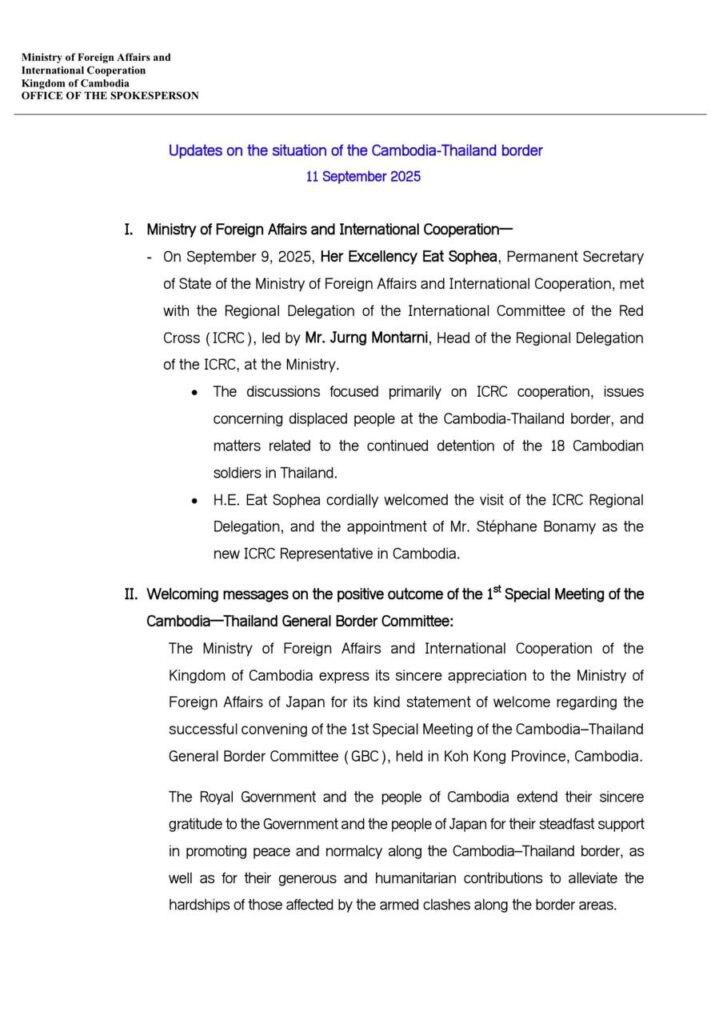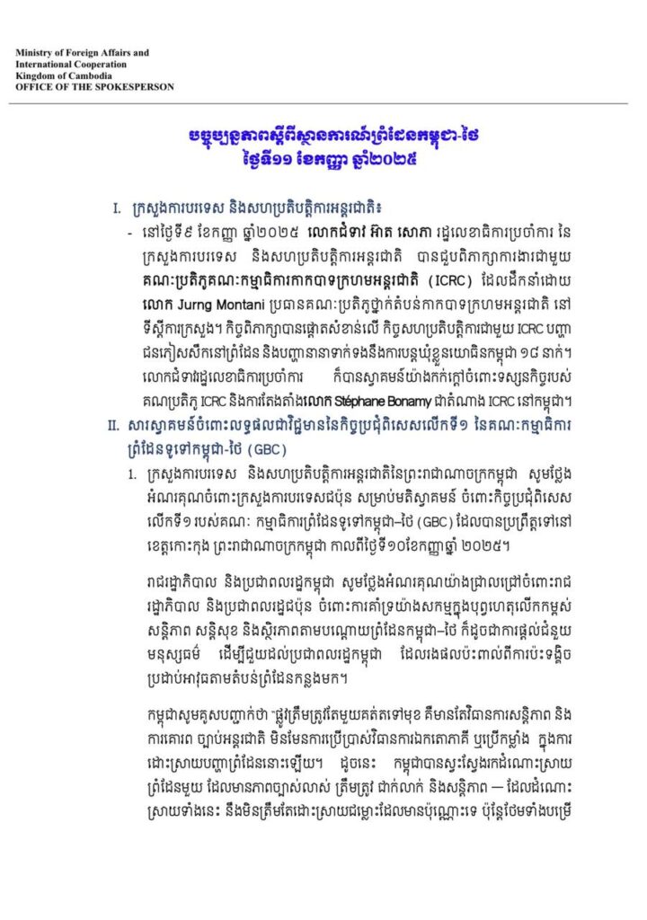 បច្ចុប្បន្នភាពស្ដីពីស្ថានការណ៍ព្រំដែនកម្ពុជា-ថៃ ថ្ងៃទី ១១ ខែកញ្ញា ឆ្នាំ២០២៥ Updates on the situation along the Cambodia-Thailand Border 11 September 2025