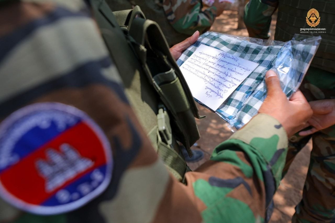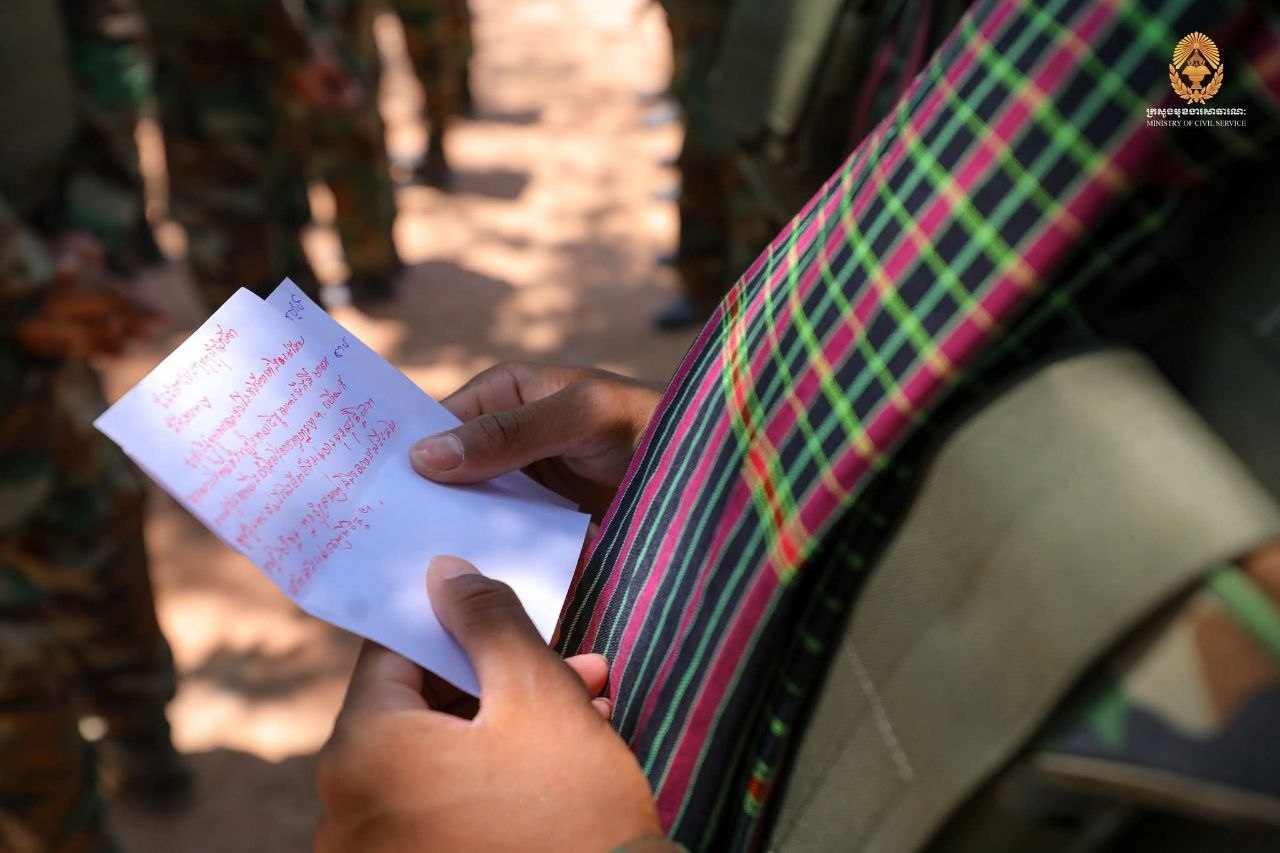 ឯកឧត្តម ហ៊ុន ម៉ានី នាំយកនូវការសាកសួរសុខទុក្ខពីសម្តេច ថ្នាក់ដឹកនាំ មន្ត្រីរាជការ និងនាំយកវត្ថុអនុស្សាវរីយ៍និងការសរសេរសារដោយដៃរបស់មហាជន ជូនទៅដល់វីរៈកងកម្លាំងដែលកំពុងឈរជើងការពារព្រំដែន