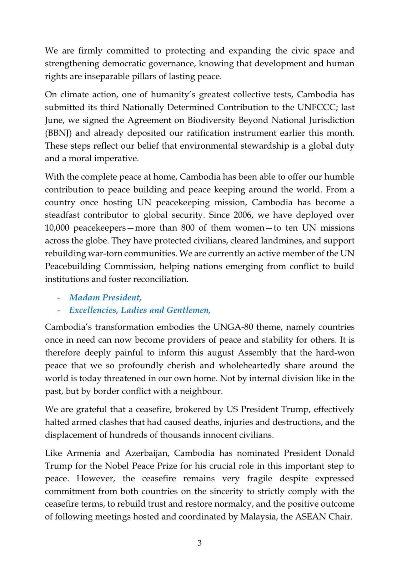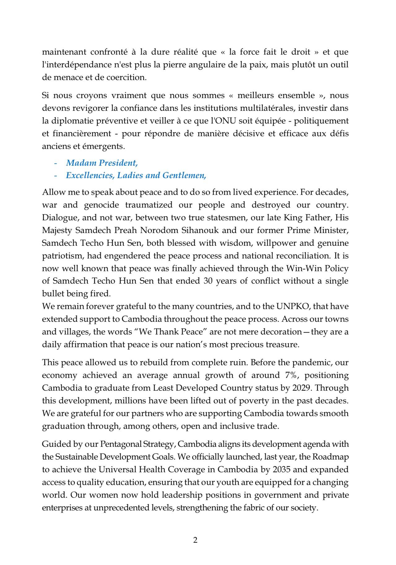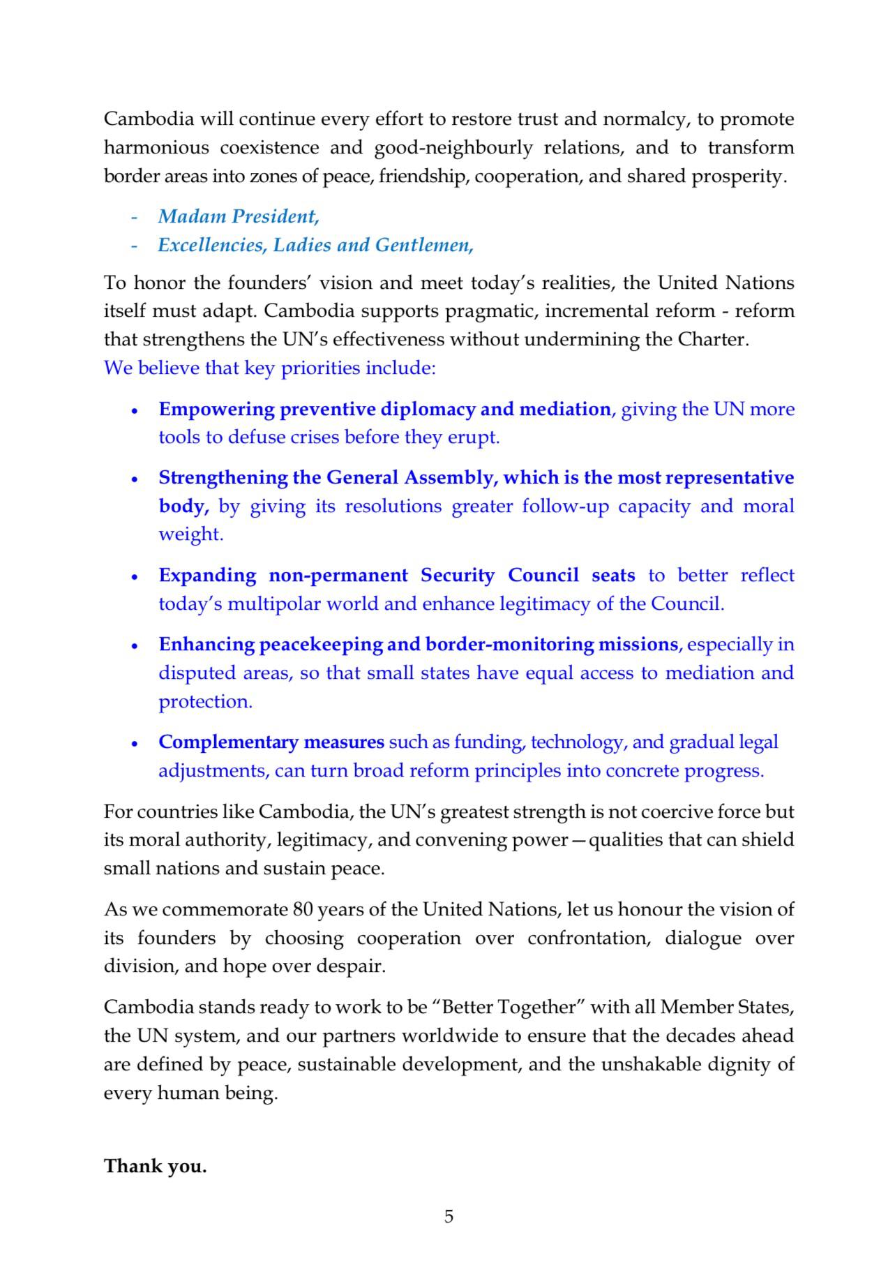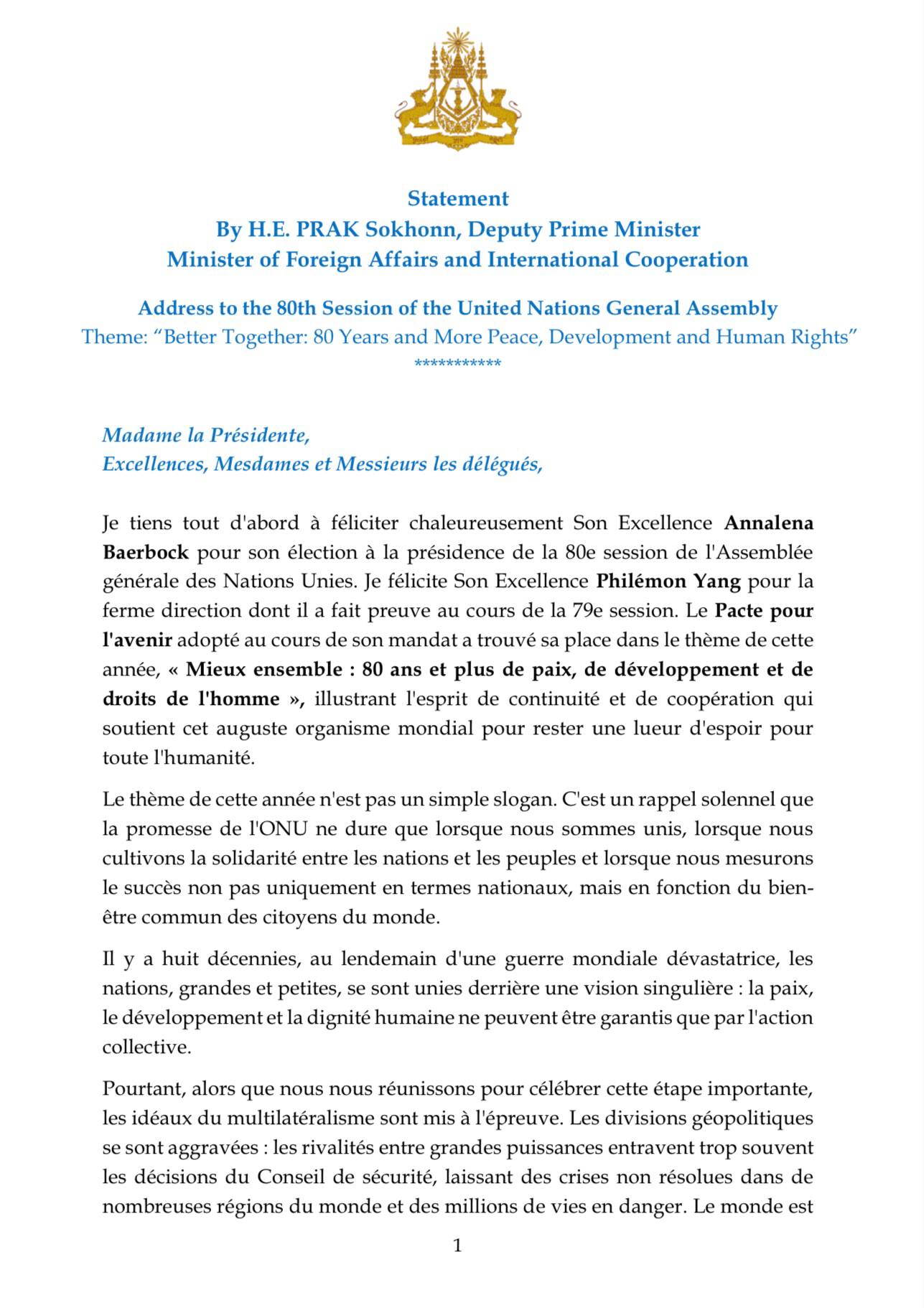 Statement By H.E. PRAK Sokhonn, Deputy Prime Minister, Minister of Foreign Affairs and International Cooperation, Address to the 80th Session of the United Nations General Assembly