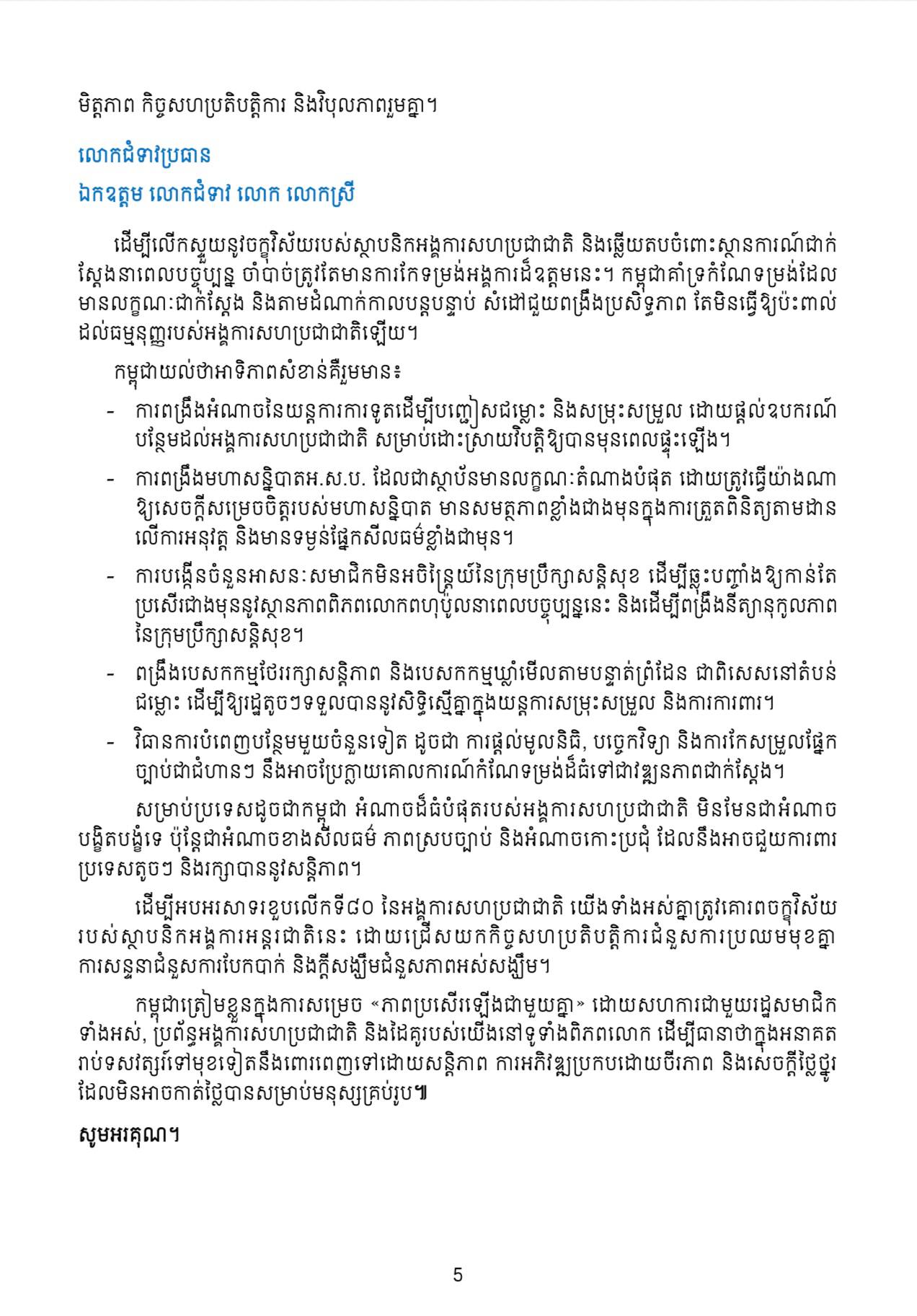 សុន្ទរកថារបស់ ឯកឧត្តម ប្រាក់ សុខុន ឧបនាយករដ្ឋមន្ត្រី រដ្ឋមន្ត្រីការបរទេស និងសហប្រតិបត្តិការអន្តរជាតិ ថ្លែងក្នុងឱកាសសម័យប្រជុំលើកទី៨០ នៃមហាសន្និបាតអង្គការសហប្រជាជាតិ សុន្ទរកថារបស់ ឯកឧត្តម ប្រាក់ សុខុន ឧបនាយករដ្ឋមន្ត្រី រដ្ឋមន្ត្រីការបរទេស និងសហប្រតិបត្តិការអន្តរជាតិ ថ្លែងក្នុងឱកាសសម័យប្រជុំលើកទី៨០ នៃមហាសន្និបាតអង្គការសហប្រជាជាតិ